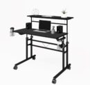 Mix industrial and modern styles together with this Techni Mobili Rolling and Adjustable Writing Desk. This desk is perfect for home-office spaces with its small footprint and offers option of 2 separate desktops independent levels with ample space that includes adjustable height mechanism. The finish coordinates with almost any decor while carbon fiber-like texture tabletop surface and powder-coated metal frame and legs that give this desk a sturdy build along with a fun design. It includes front wheels with locking mechanism that let you swiftly glide in a home office space. The desktop is large enough to hold your laptop, notebooks, and office essentials while the other tabletop surface can be used as riser to keep items within reach. It comes with integrated headphone and cup holders that can be easily installed on right and left.