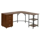 This L-shaped computer desk will add a rustic, contemporary feel to your room while creating an efficient workspace environment. It unifies a heavy-duty steel frame with an appealing rich, engineered walnut color wood tabletop that offers spacious space meeting your work needs while you focus on your projects. This stylish and functional L-shaped desk design includes two adjustable open shelves and three side storage drawers to conceal office accessories and documents. This desk’s functionality and versatility bring style and organizational appeal to your workspace.