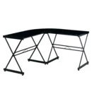 • Sleek L-Shaped reversible glass desk, ideal for corner placement