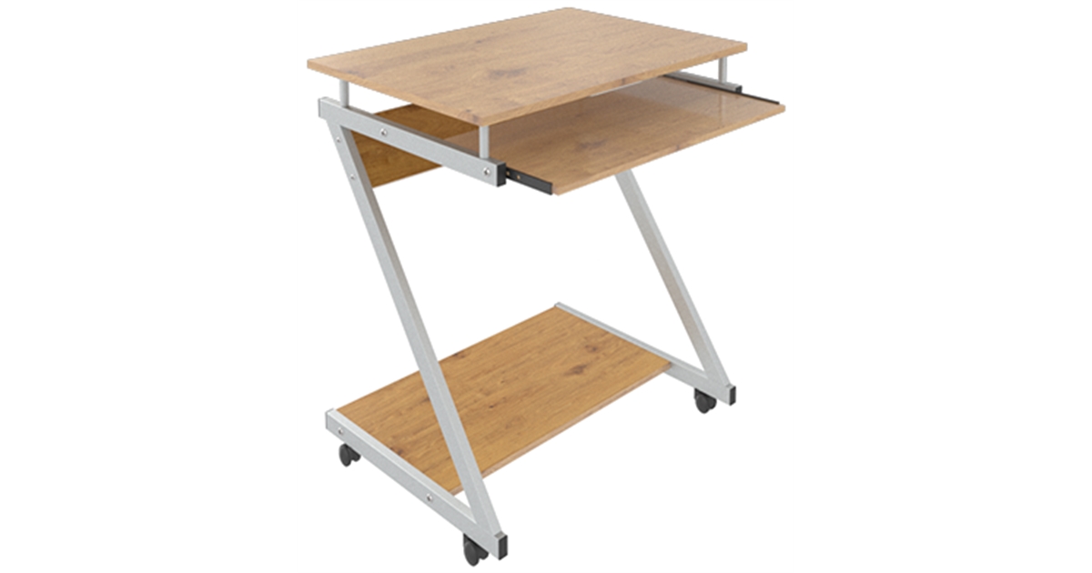 Versatile and functional single-level desk with sliding keyboard tray. Constructed with a sturdy steel frame to offer maximum durability. Features a compact design and wheels to make it completely portable.